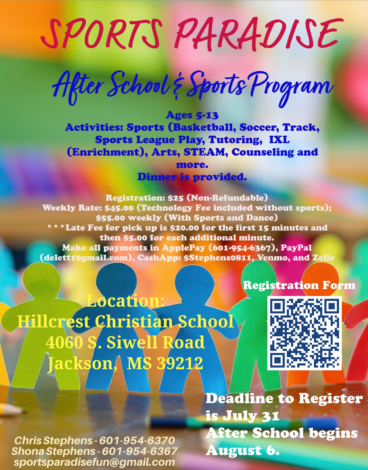 Our program offers a safe, enriching environment with dinner, homework help, fitness, sports, dance and more. Sports and dance are by signup only. If you would like to enroll or have any questions, please don't hesitate to contact us. We look forward to a great school year of learning, fun, and growth!